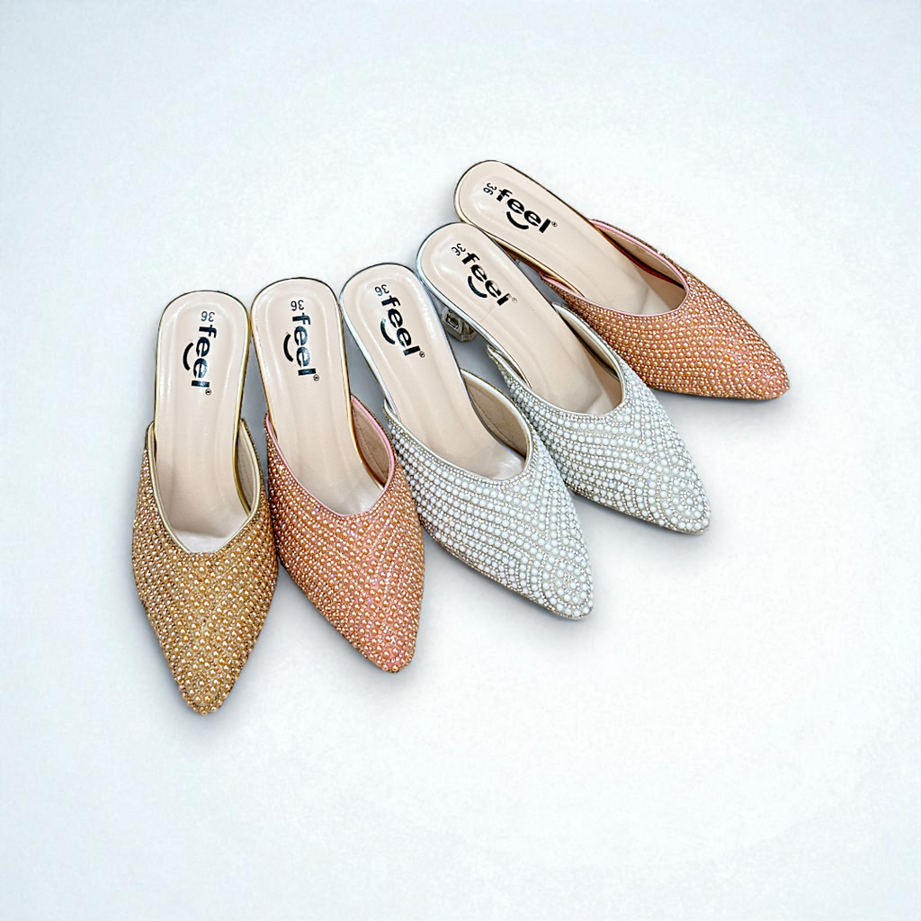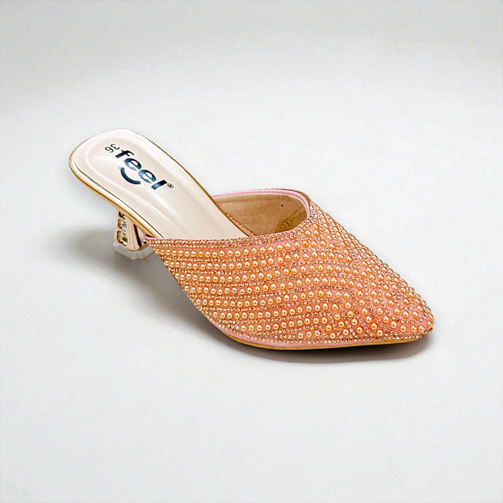 - Upper: Faux Leather Locked Pearl & Stone Decorated.